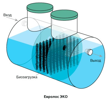 • Во втором отсеке, за счет деятельности анаэробных бактерий, которые располагаются на биологической загрузке происходит биоочистка стоков;