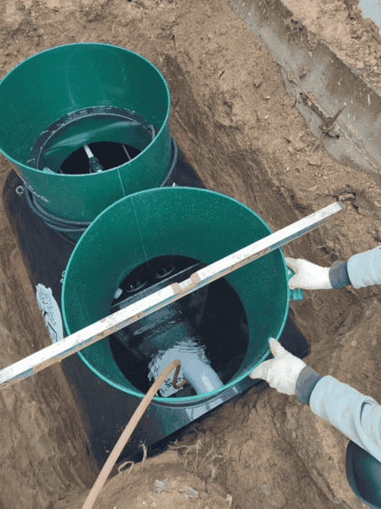 Инженер осматривает Ваш участок и производит все необходимые расчеты, после чего выбирает тип очистного сооружения, оговаривает с Вами работы, которые необходимо выполнить на участке для монтажа автономной канализации.