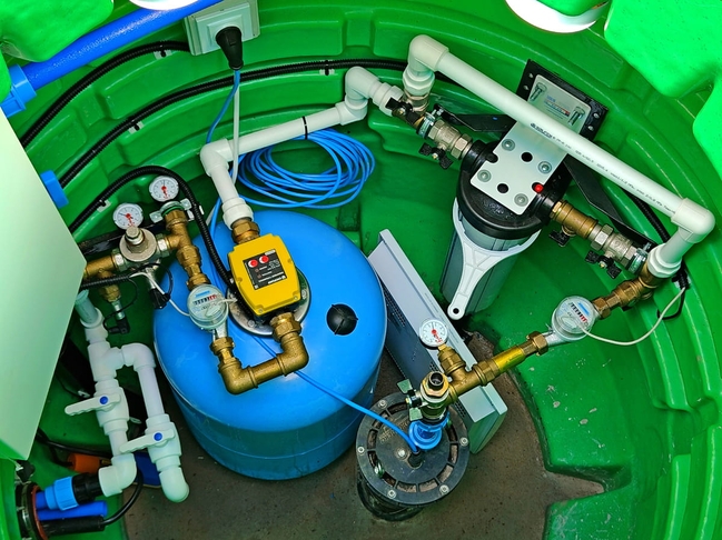 1. Кессонная обвязка (для круглогодичного использования)Кессон — это герметичная конструкция, которая устанавливается на поверхности земли и защищает оборудование скважины от внешних воздействий. Кессонная обвязка включает в себя насос, фильтры, запорные и регулирующие устройства.